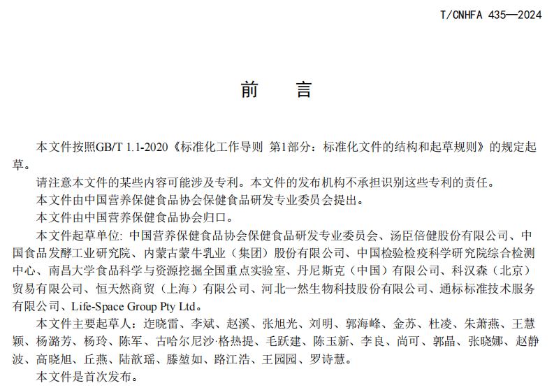 本次发布的《益生菌剂胃液耐受性检验方法》团体标准由肠道健康标准化研究联盟发起,中国营养保健食品协会保健食品研发专业委员会、汤臣倍健股份有限公司、中国食品发酵工业研究院、内蒙古蒙牛乳业(集团)股份有限公司、中国检验检疫科学研究院综合检测中心、南昌大学食品科学与资源挖掘全国重点实验室、丹尼斯克(中国)有限公司、科汉森(北京)贸易有限公司、恒天然商贸(上海)有限公司、河北8868体育官网生物科技股份有限公司、通标标准技术服务有限公司、Life-Space Group Pty Ltd等权威机构与企业共同完成,标准发布之后,工作组将继续推动本标准在菌株筛选和产品质量评价中的使用。